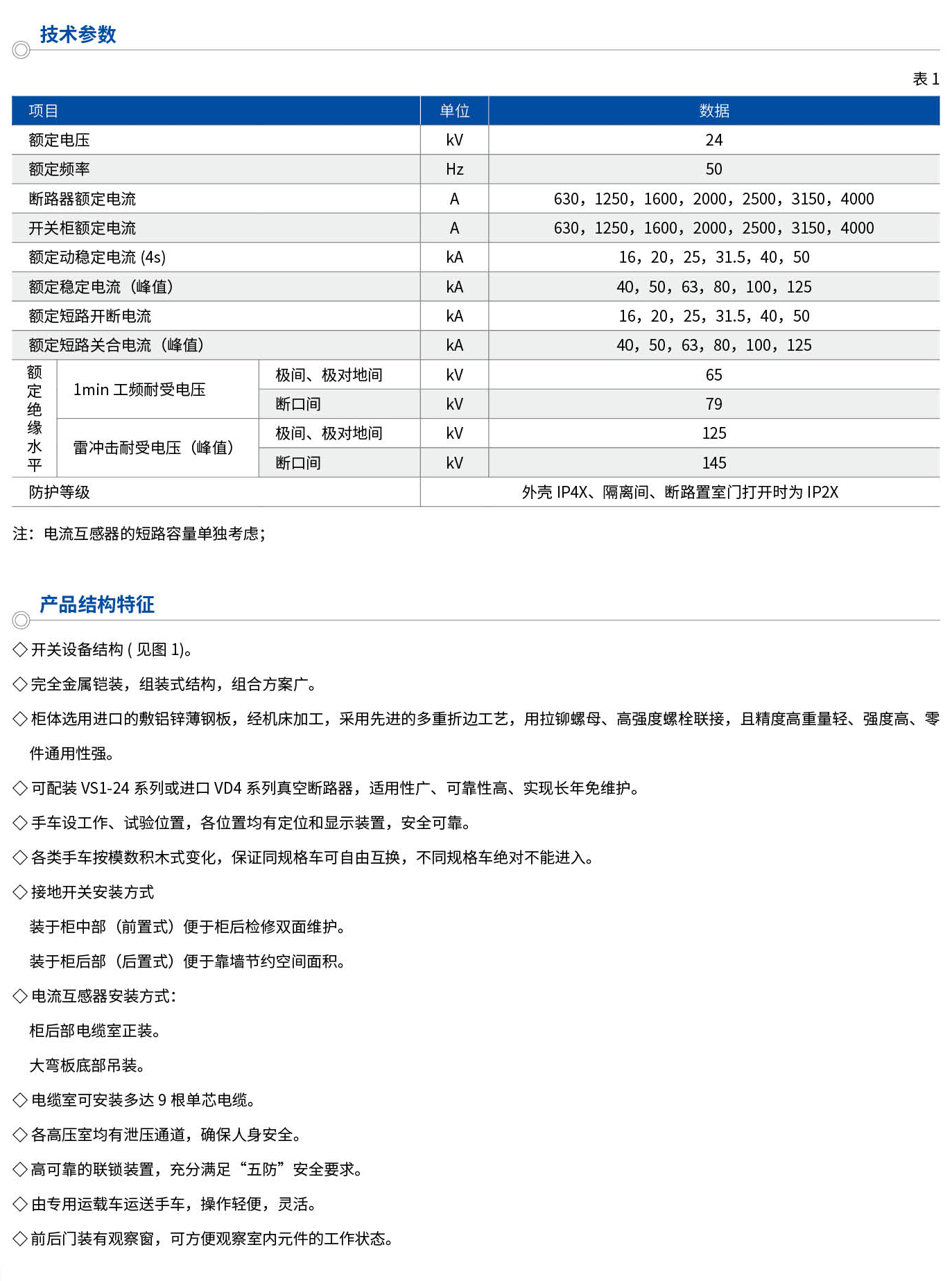 KYN28-24铠装移开式交流金属封闭开关设备(以下简称“开关设备”),适用于三相交流50Hz电力系统,用于接受和分配电能并对电路实行控制,保护及监测。本产品符合标准:GB3906-2006《3.6-40.5kW交流金属封闭开关设备和控制设备》,GB/T11022《高压开关设备和控制设备标准的共用技术要求》,IEC62271:200《额定电压kV以上52以下交流金属封闭开关设备和控制设备》,DL/T404《户内交流高压开关柜订货技术条件》。